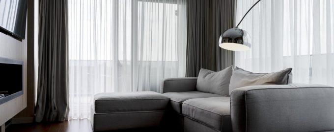 Ljus tyll på fönstren ger rummet ett mysigt och fräscht utseende. Dessutom fungerar dess porösa struktur som ett slags filter som absorberar gatudamm och