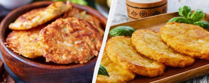 Vi använder en mixer eller en matberedare istället för ett rivjärn för att hacka potatis, men en köttkvarn är mest bekväm. Förutom huvudingrediensen kan du lägga till andra grönsaker (morötter, zucchini, rödbetor) eller malet kött, vilket enkelt skapar nya variationer av skålen. Det tar inte mer än 10 minuter att mala, och ytterligare 10 minuter räcker för stekning, särskilt om du gör små mängder.