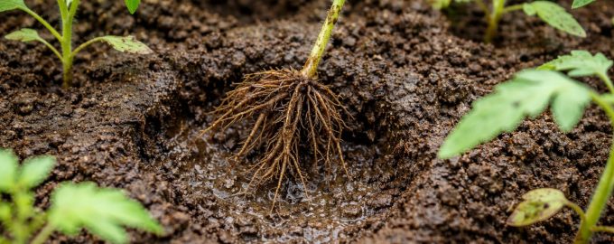 När jorden förvandlas till ”sten” efter vattning fångas tomaternas ömma rötter. Problemet är inte brist på gödselmedel utan mediets fysiska egenskaper.