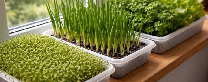 Det bästa valet är vattenkrasse, som producerar en gröda inom en vecka efter sådd.