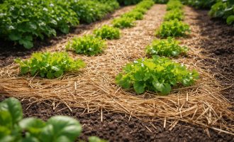 Mulchning av rotzonen med organiskt material för att behålla fukten.