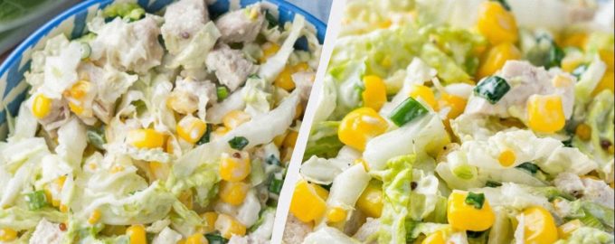 Lätt att mage sallad med kål, kyckling och majs är lätt att förbereda.