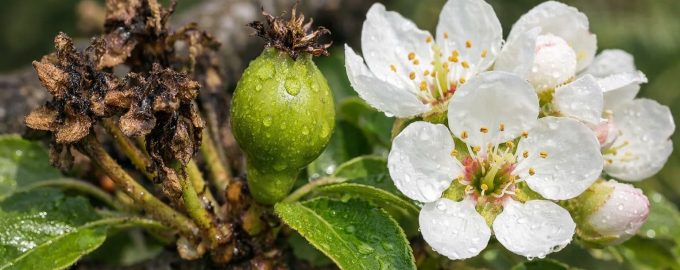 Vid kraftiga angrepp förlorar päronträdet sin färg och sparar på resurserna för att överleva.