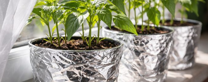 Använd vanlig livsmedelsfolie eller vitt papper för att linda in mörka krukor.