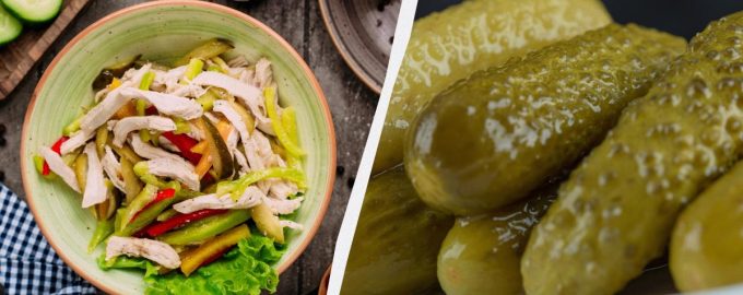 Låt oss se hur man förbereder en slags sallad Men’s caprice med kyckling och pickles.