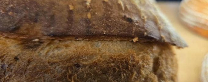 Brödet får en tjock, krispig skorpa och ett perfekt smul.