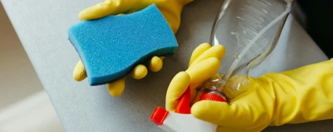 - Låt inte produkten stelna.Många sprayar produkten och torkar bort den omedelbart. Men t.ex. desinfektionsmedel tar 5-10 minuter på sig att verka effektivt. Läs bruksanvisningen och ge produkten tid att döda bakterier och smuts.